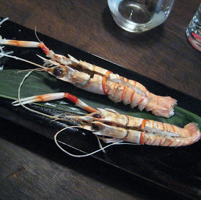 Grilled scampi – grilled tea salted scampi with lemon paired with Kozaemon Honjozu Kyoukai #7 Koubo Dry. This was a perfect combination - the wonderfully delicate honjozo loved the salt and squeeze of lemon with the scampi.